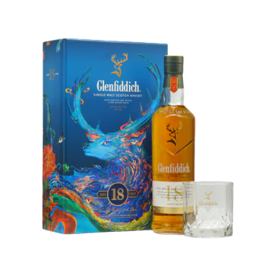 Glenfiddich 18 Year Old Single Malt Whisky + Rock Glass Set